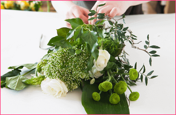 しかし、フラワーアレンジメントの場合、草や木などは使用しません。